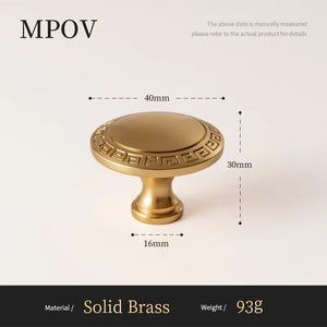 The Kyros 40mm Knob in satin gold finish features a refined Greco-linear motif, bringing a sense of timeless structure and understated elegance to drawers, wardrobes, and furniture.