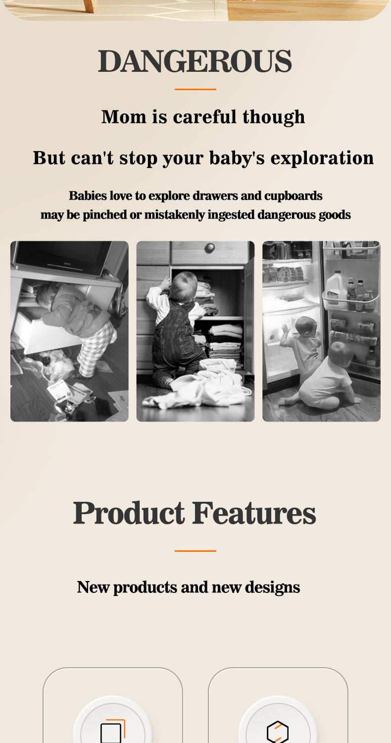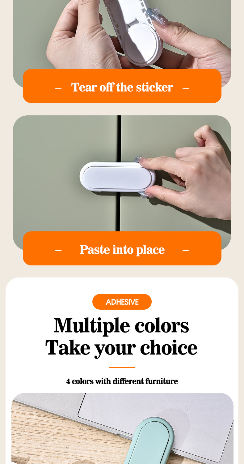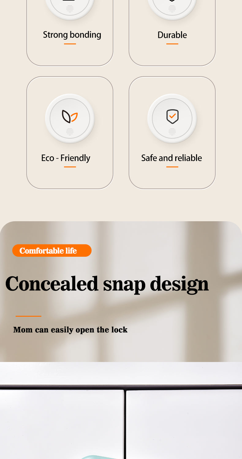 Cabinet Safety Lock - Quality ABS, Strong Bonding, Durable, Eco-Friendly, Safe & Reliable, Concealed Snap Design, One-handed operation, Easy Installation.