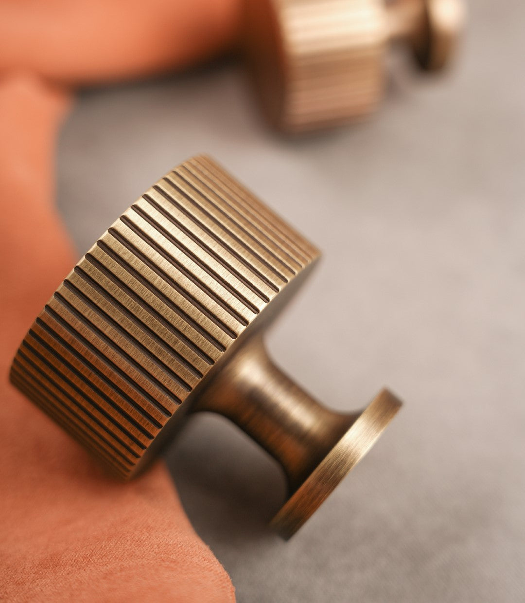 The Vortex 28mm Knob in antique bronze finish, adorned with a stripped lines effect, brings a refined vintage touch to cabinets and furniture.